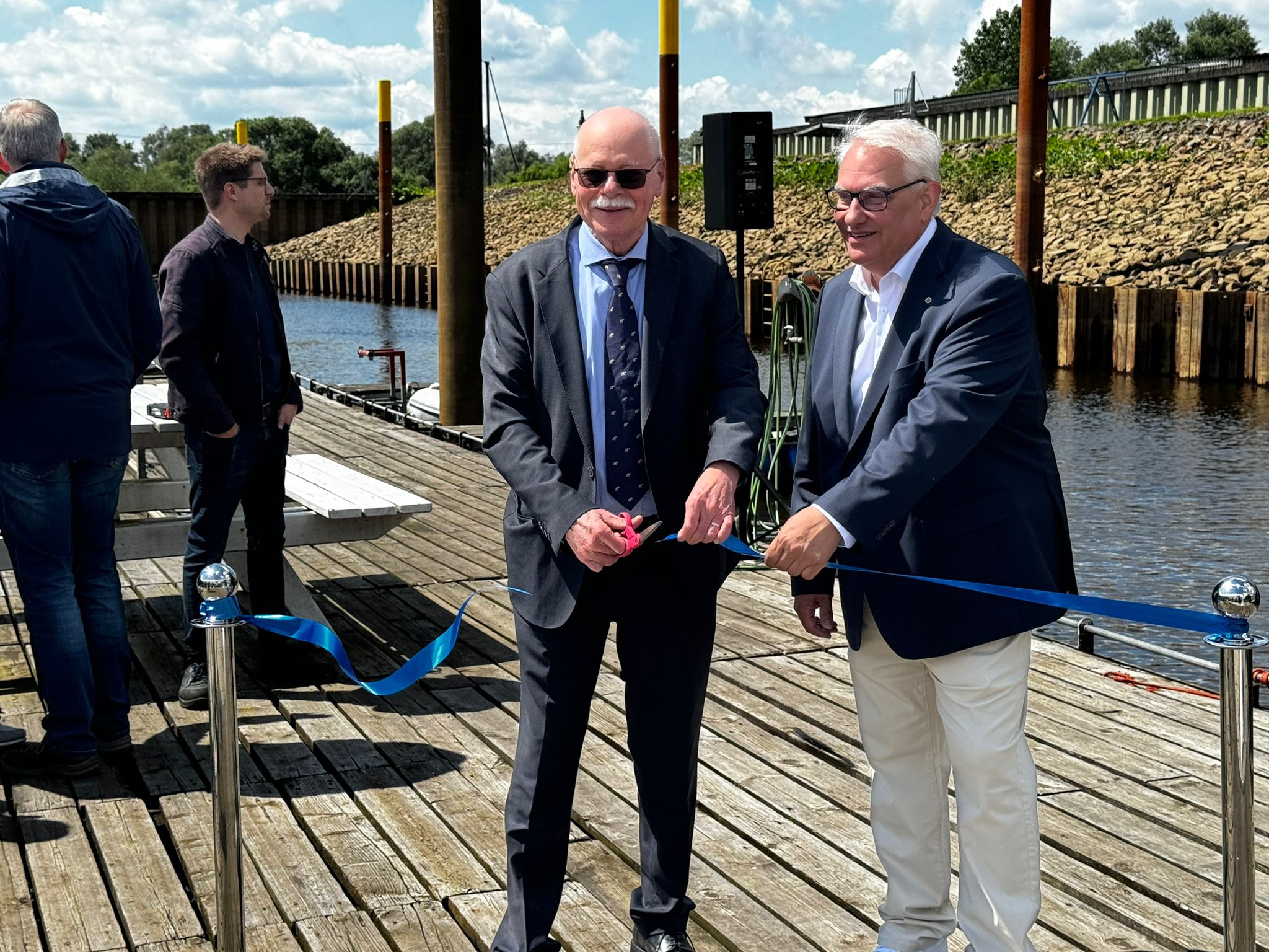 Der Senator Ulrich Mäurer (Links im Bild) und Tiemo Heidmann (Rechts im Bild), der Vorsitzende des Vereins VWV, nahmen gemeinsam an der Zeremonie teil und durchschnitten symbolisch ein Band.